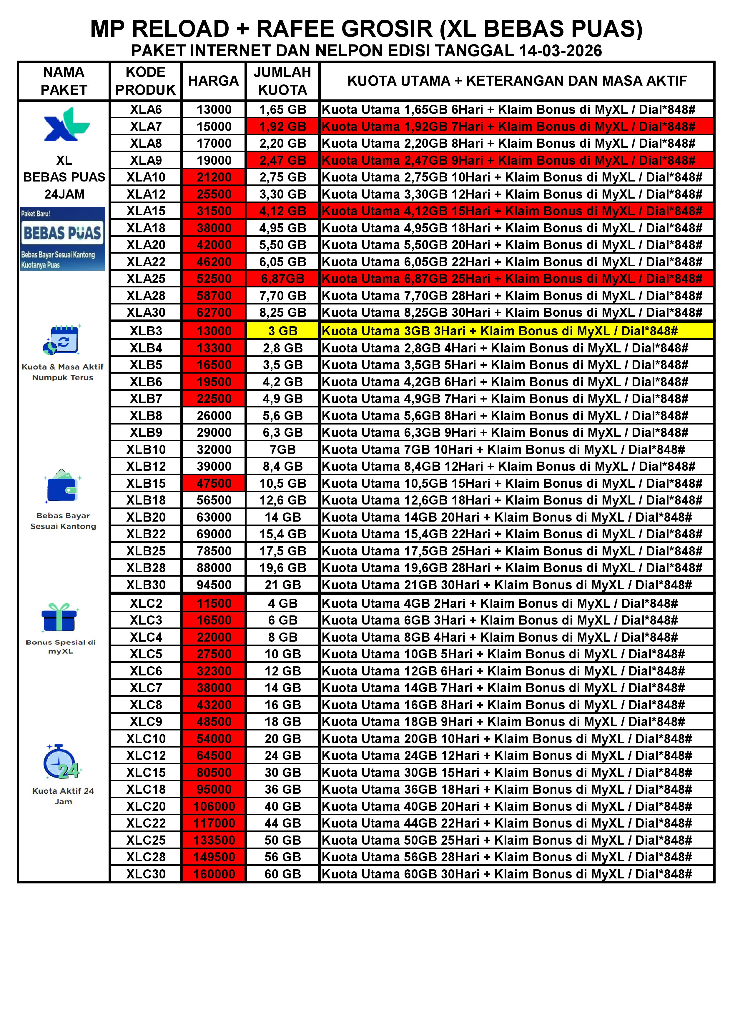 MP RELOAD INET XL BEBAS PUAS PER TGL 14-03-2026