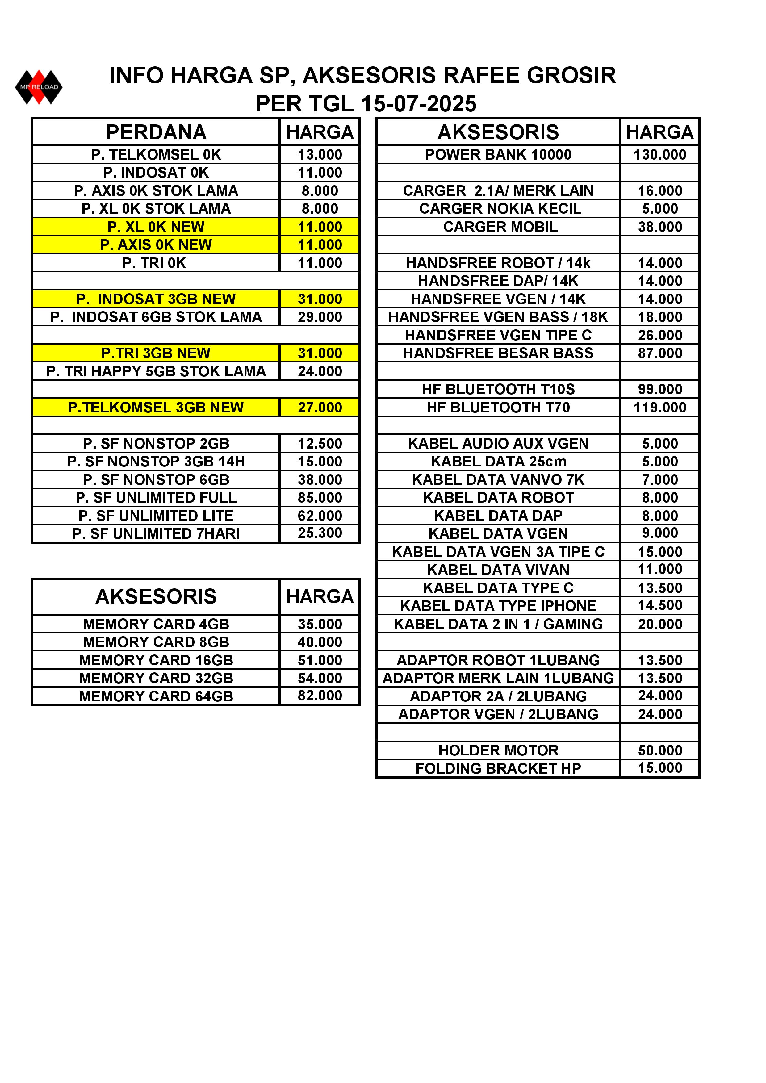 HARGA PERDANA DAN AKSESORIS PER TGL 14-03-2026