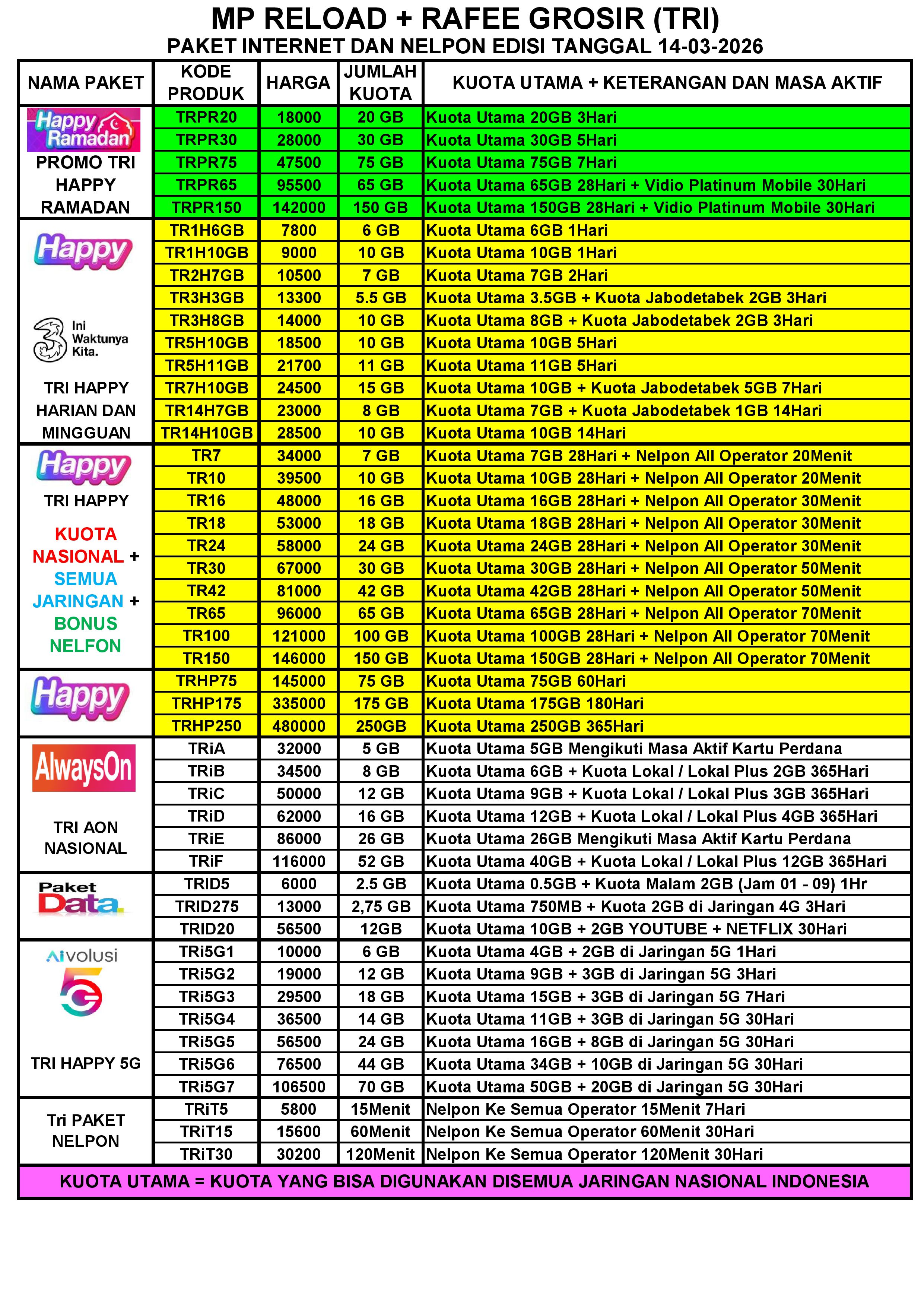 MP RELOAD INET TRI PER TGL 14-03-2026