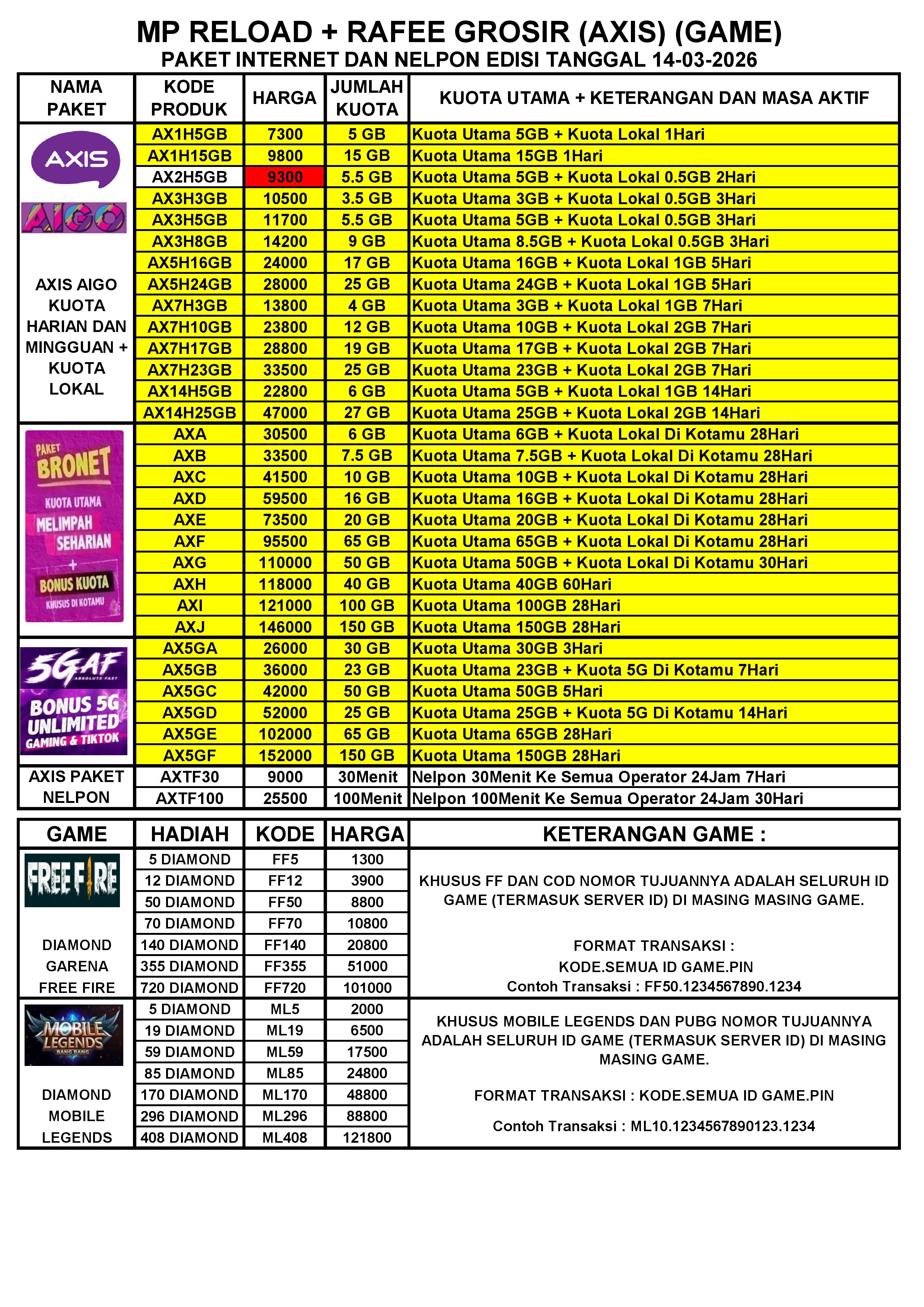 MP RELOAD INET AXIS DAN GAME PER TGL 14-03-2026