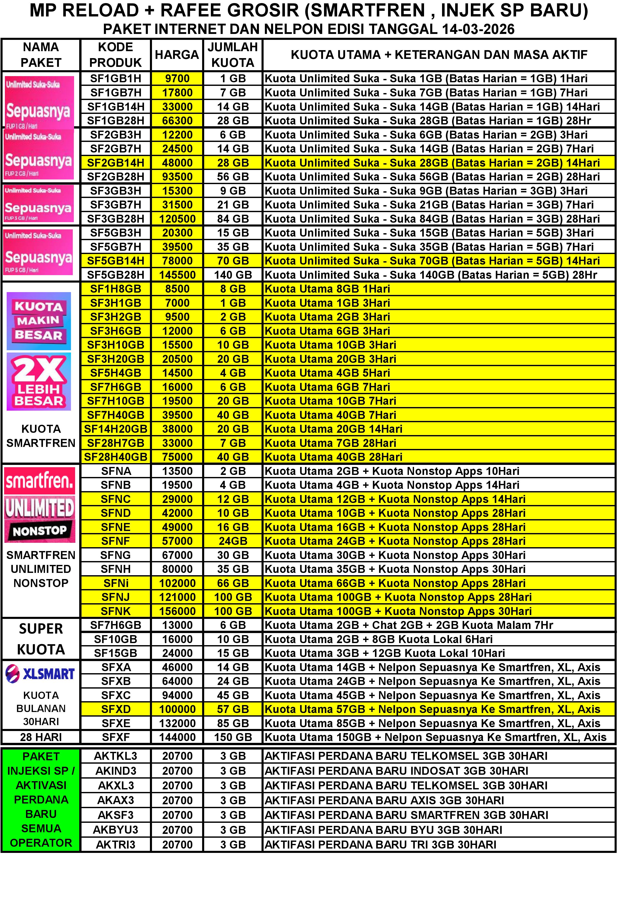 MP RELOAD INET SMARTFREN PER TGL 14-03-2026