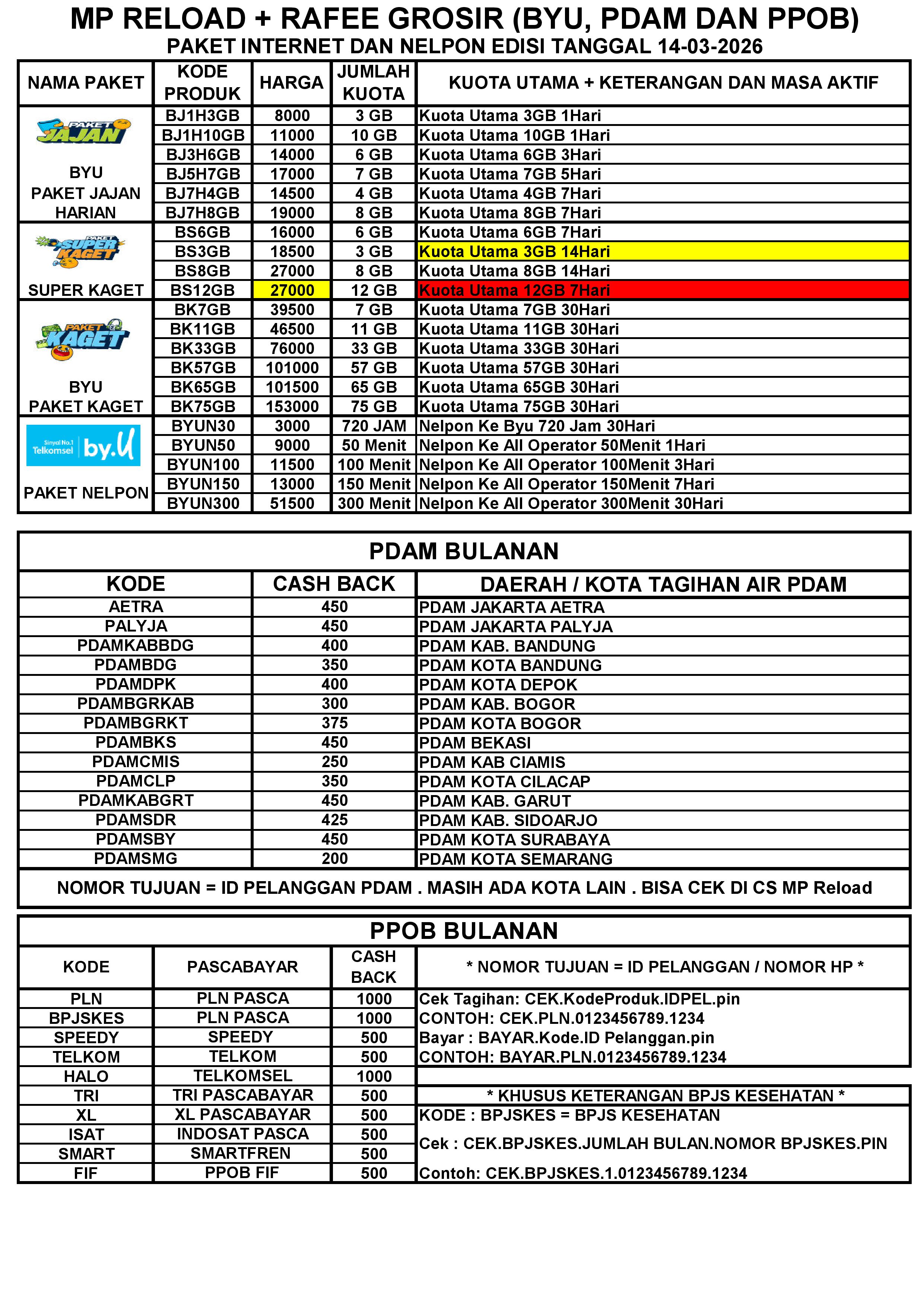 MP RELOAD INET BYU DAN PPOB PER TGL 14-03-2026