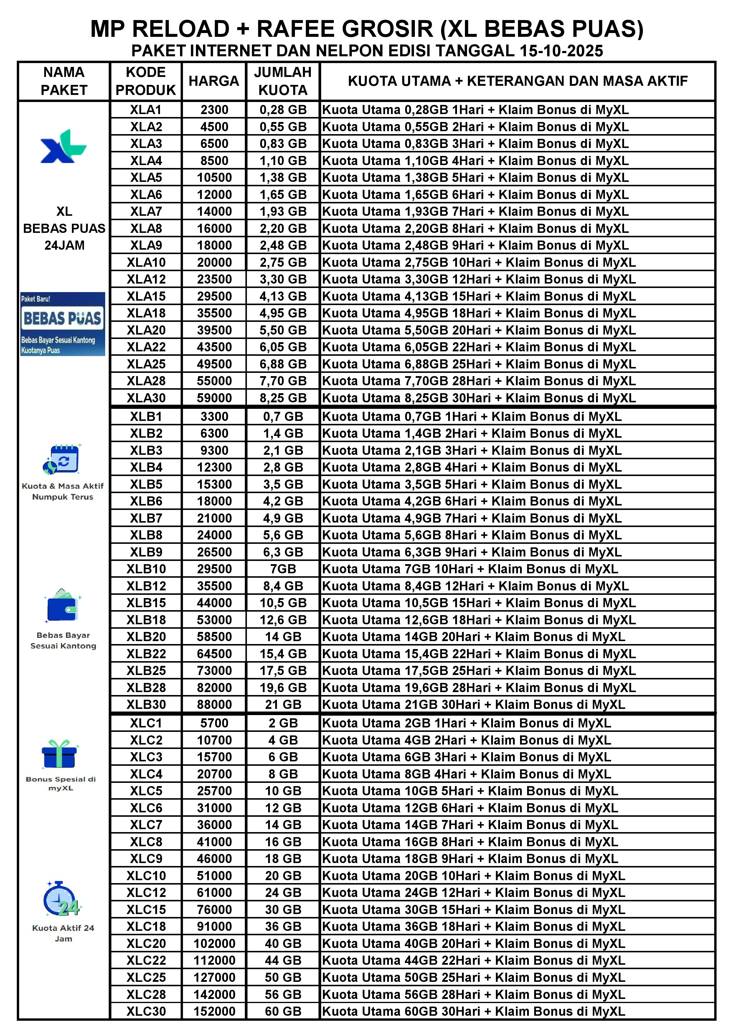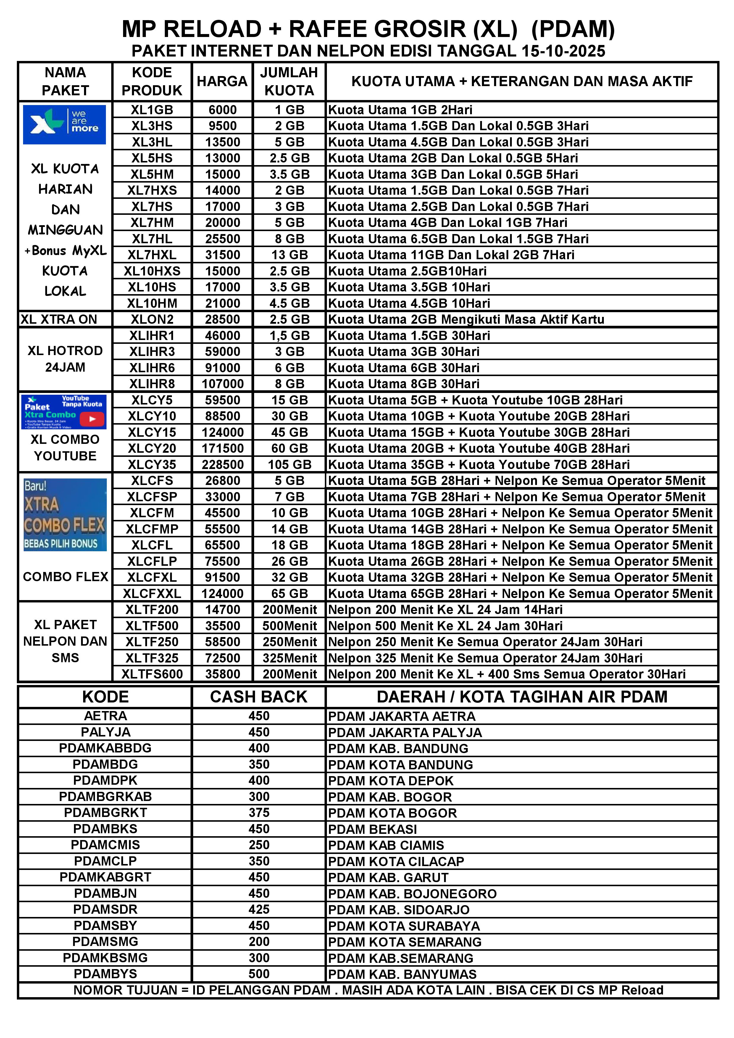 MP RELOAD INET XL DAN PDAM PER TGL 17-10-2025