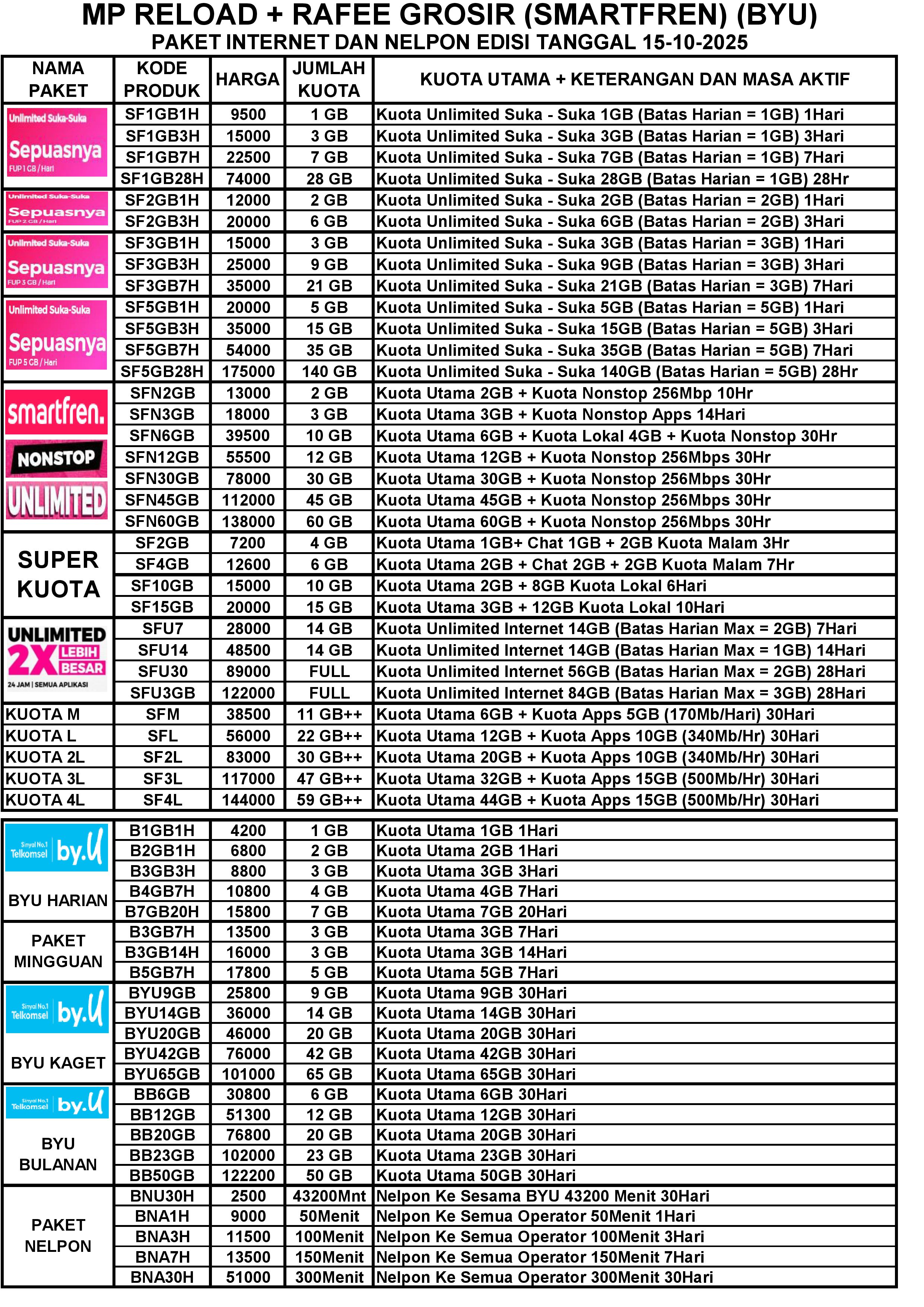 MP RELOAD INET SMARTFREN DAN BYU PER TGL 17-08-2025