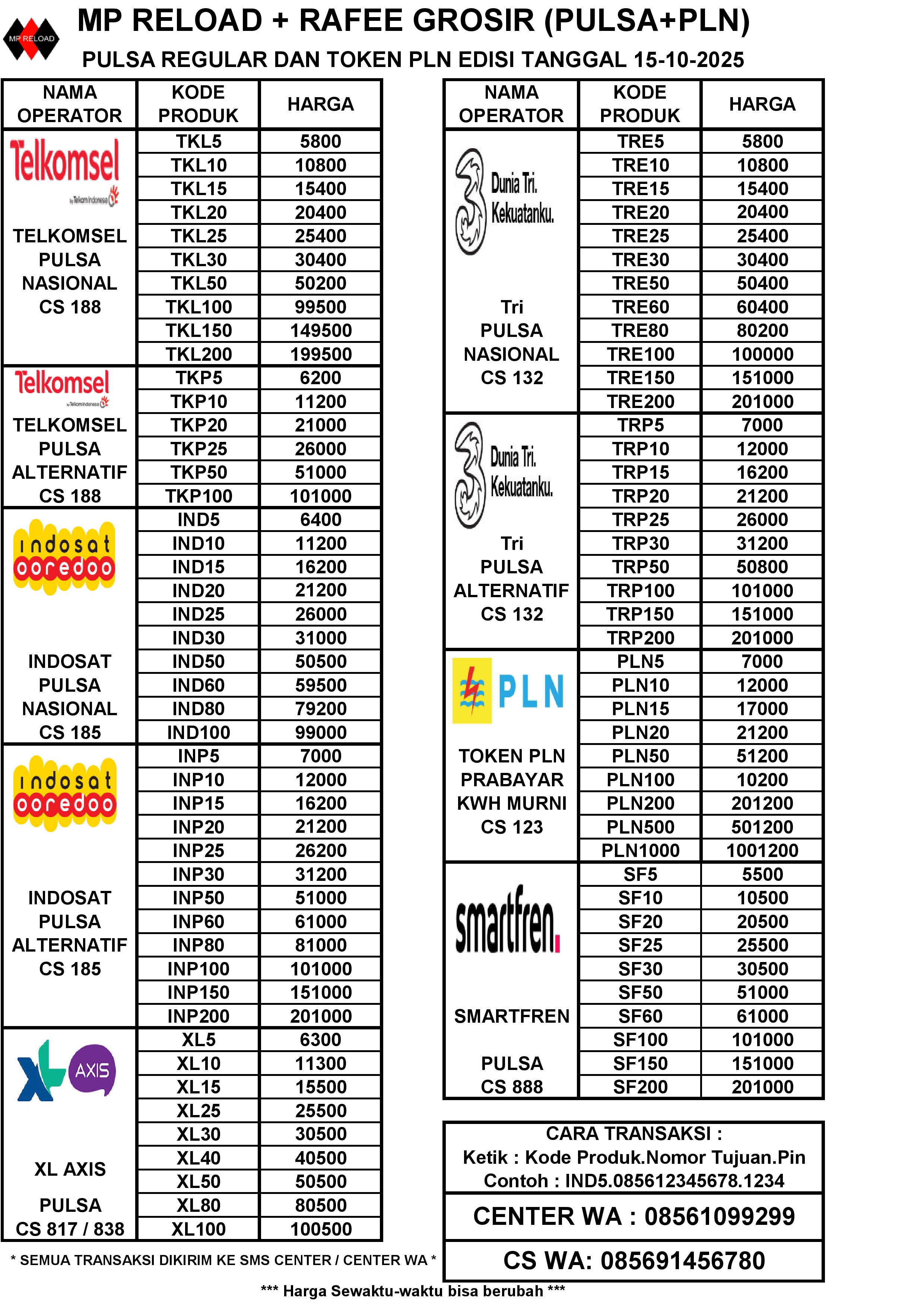 BROSUR MP RELOAD PULSA DAN PLN PER TGL 17-10-2025