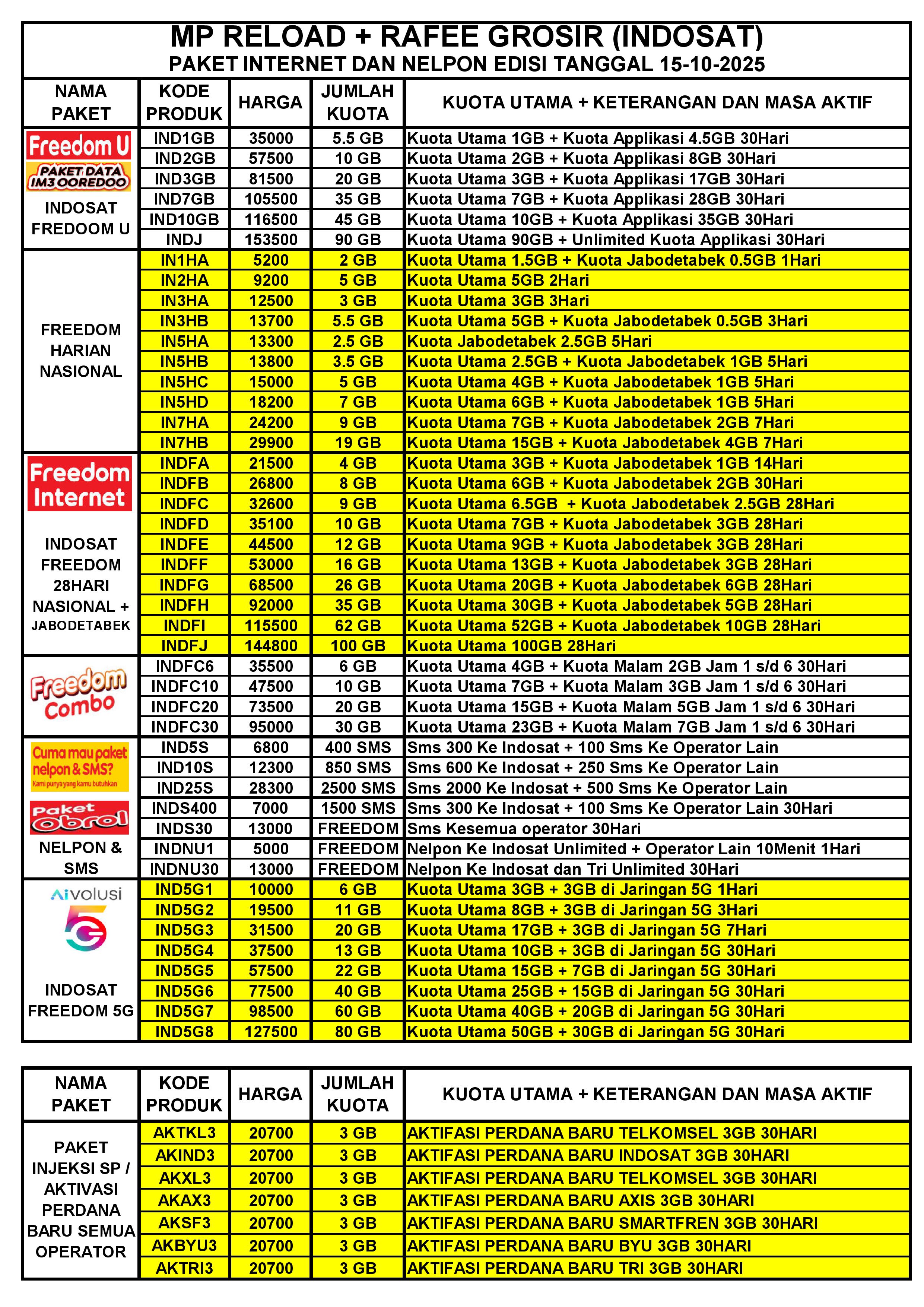 MP RELOAD INET INDOSAT PER TGL 17-10-2025