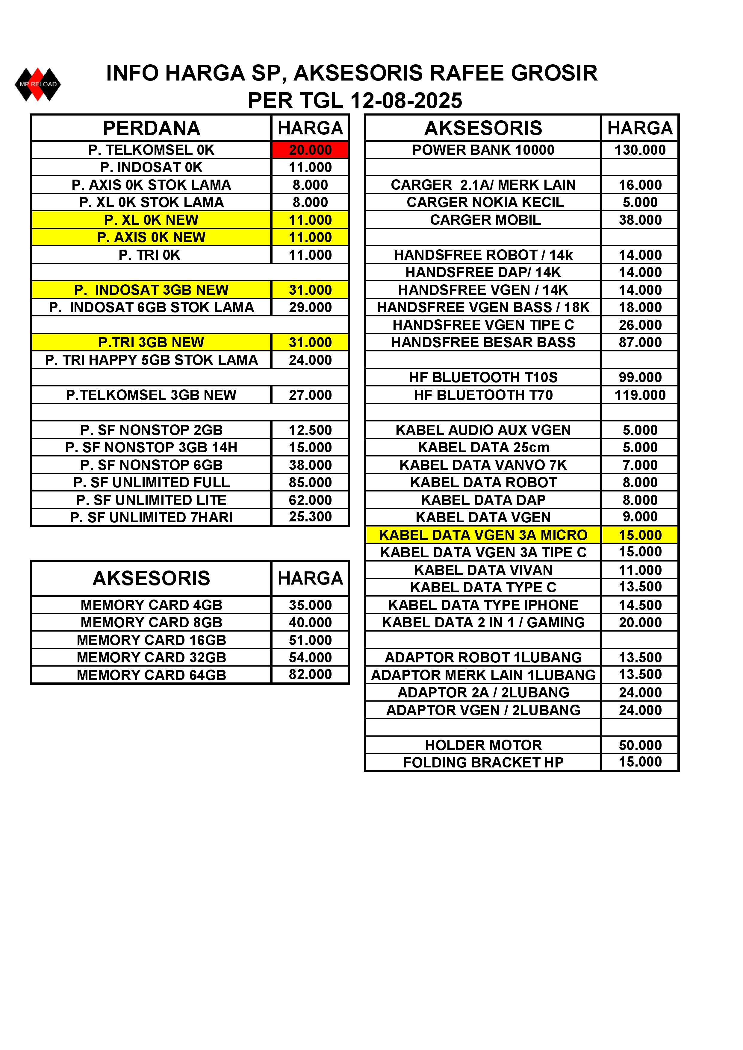 HARGA PERDANA DAN AKSESORIS PER TGL 17-10-2025